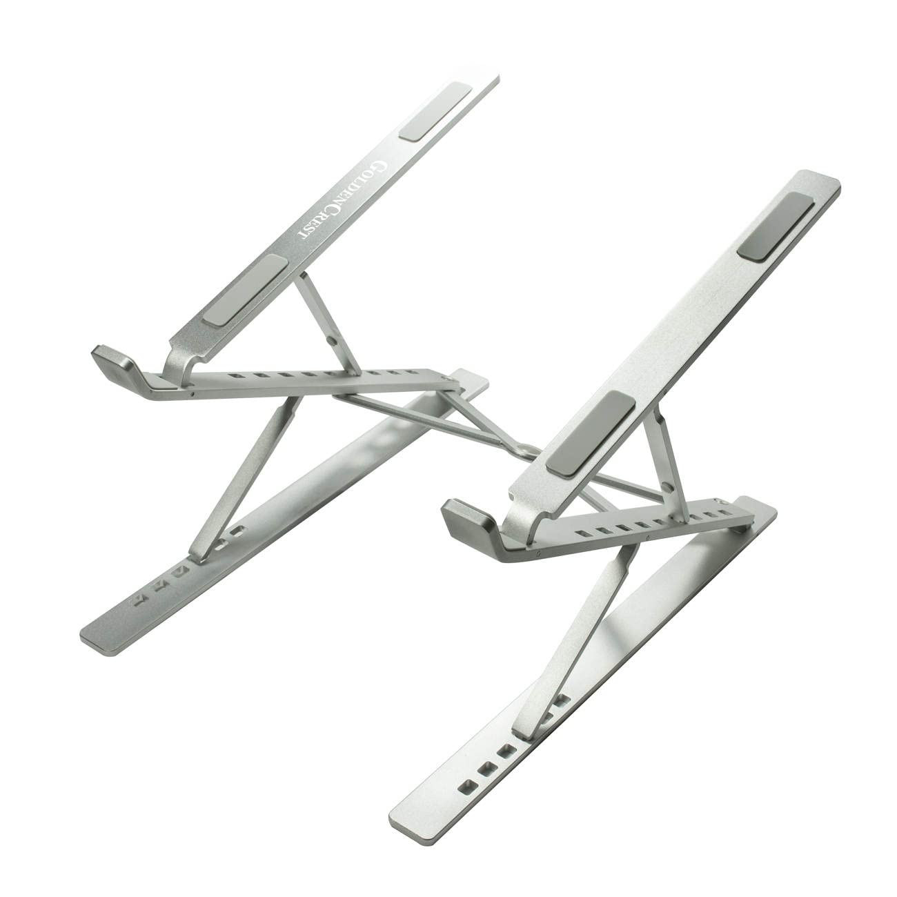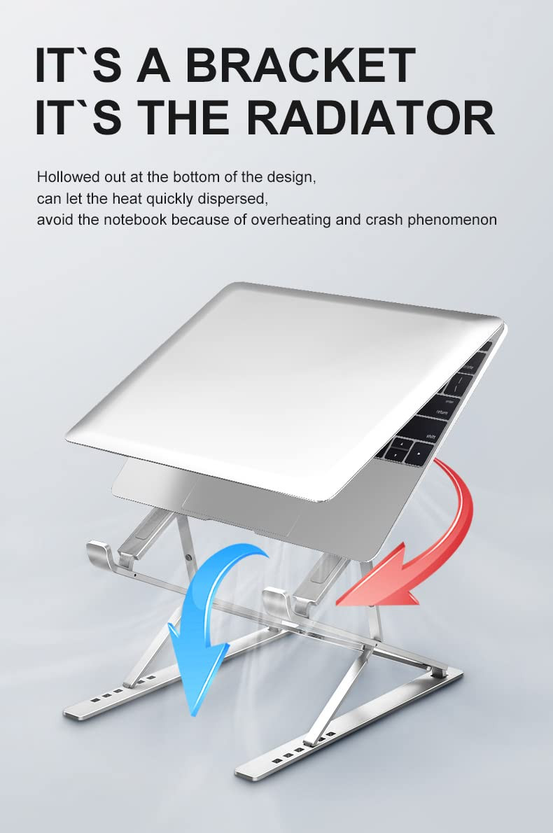 Laptop Riser for Desk: Two-Layer Adjustable and Portable Laptop Stand ✅ HANDY - Foldable, more portable, integrated folding design, , compact and does not take up space, more convenient for travel and storage. And more important for an organized desktop and workspace. ✅ ERGONOMIC - Design allowing for a comfortable sitting position and posture for more health and less back, shoulder and neck pain. ✅ SAFE - The base silicone pads and the non slip strip makes your laptop fit tightly, non slip and stable without shaking. Also extra silicon pads to reinforce stability and anti slip. ✅ DURABLE - Typing without shaking with Triangel Stability. The structure has a strong bearing capacity. ✅ ENJOYABLE - Suitable for 10 - 17 inch laptops and other portable devices like Tablet Mobile Devices