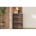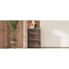 Retro Country Style: This 5-drawer storage cabinet exudes a retro farmhouse style that adds a touch of vintage charm to any bedroom. Elevate your bedroom decor with this retro farmhouse style wooden dresser, combining timeless design with modern functionality. Space-Saving: With 5 spacious drawers, it offers ample storage space for all your daily essentials and accessories neatly organized and easily accessible. Elevate your daily grooming routine with this chic and functional dressing table that not only enhances the aesthetic appeal of your bedroom but also provides practical storage solutions to help you maintain a clutter-free environment. Safety Guarantee: The chest has a load-bearing capacity of 250lbs, and each drawer has a load-bearing capacity of 15lbs, and can have an interlocking mechanism. Safe and secure, with anti-tipping certification. Product Quality: Quality is paramount in our chest. Made from high-quality particle board, this chest is built to last. The drawers slide smoothly on their tracks, ensuring a seamless opening and closing experience. The finish is durable and scratch-resistant, maintaining its beauty even with daily use. Easy to assemble: The product comes in a package. There are no screws to assemble and they are all buckle structures, making it easy for customers to assemble. Retro American Country Style Wooden Dresser with 5 Drawer, Storage Cabinet for Bedroom,Dark Walnut This chest of drawers adopts an American country style and is suitable for placement in a room with a natural design. It is made of high-quality particleboard and is sturdy and durable. It also adopts an interlocking mechanism, making it safer and more reliable to use. 5 drawers can store clothes, sheets, blankets, toys and more. Very convenient and practical, it is an excellent choice for bedroom decoration.
