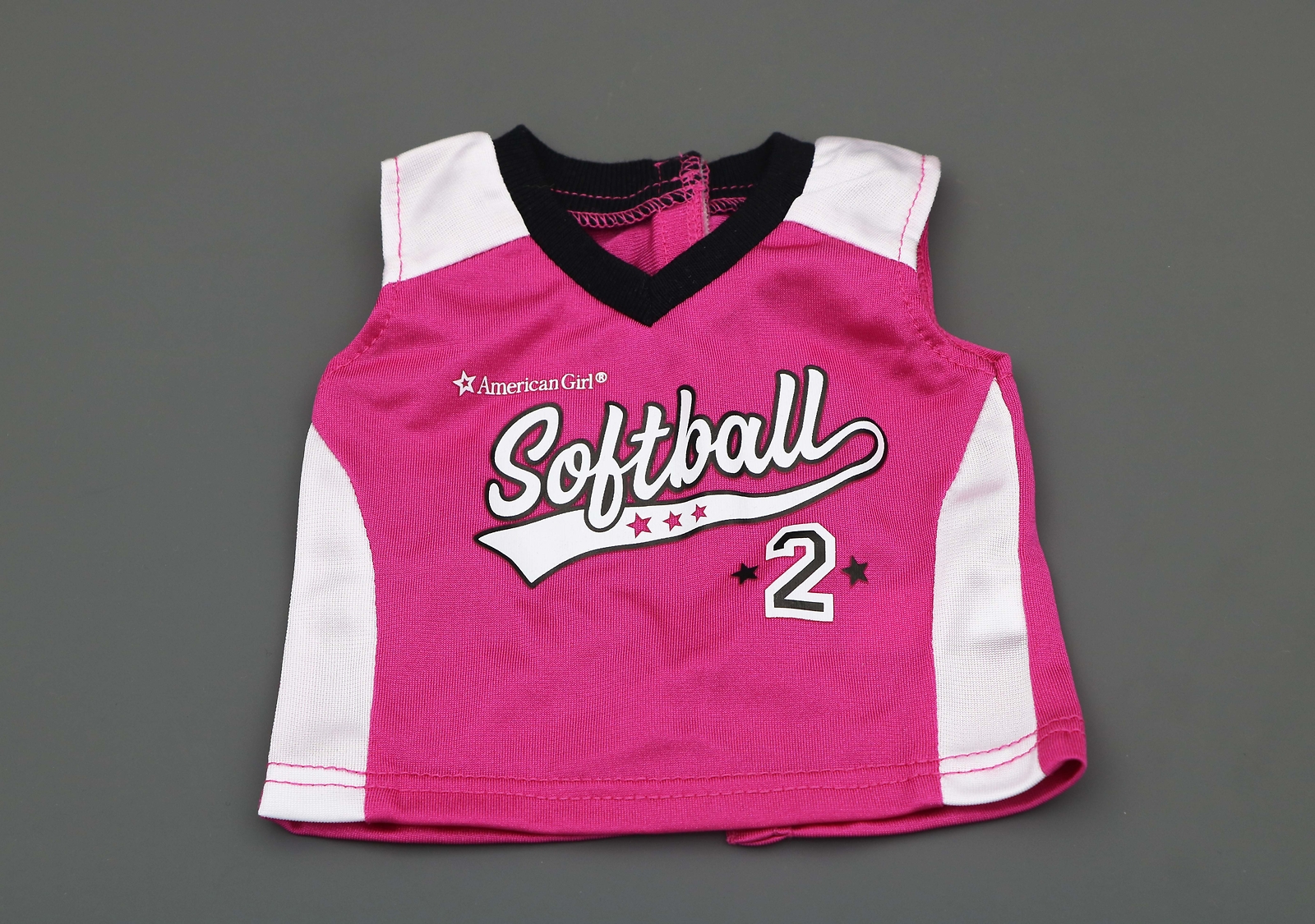 Shipping discount: Free shipping for orders over US $25.00,visit our store to add others items. Item Descriptions: A sleeveless pink jersey with white contrast piecing details and a printed graphic Brand: American girl Size: scaled for 18'' doll After sales: Any questions(such as broken、lost……) before you leave feedback please feel feel to contact us,we will do our best to solve it. Shipping details: Your item will be transported by SpeedPAK with tracking number,all can be tracked .(take 15-25 days to arrived)