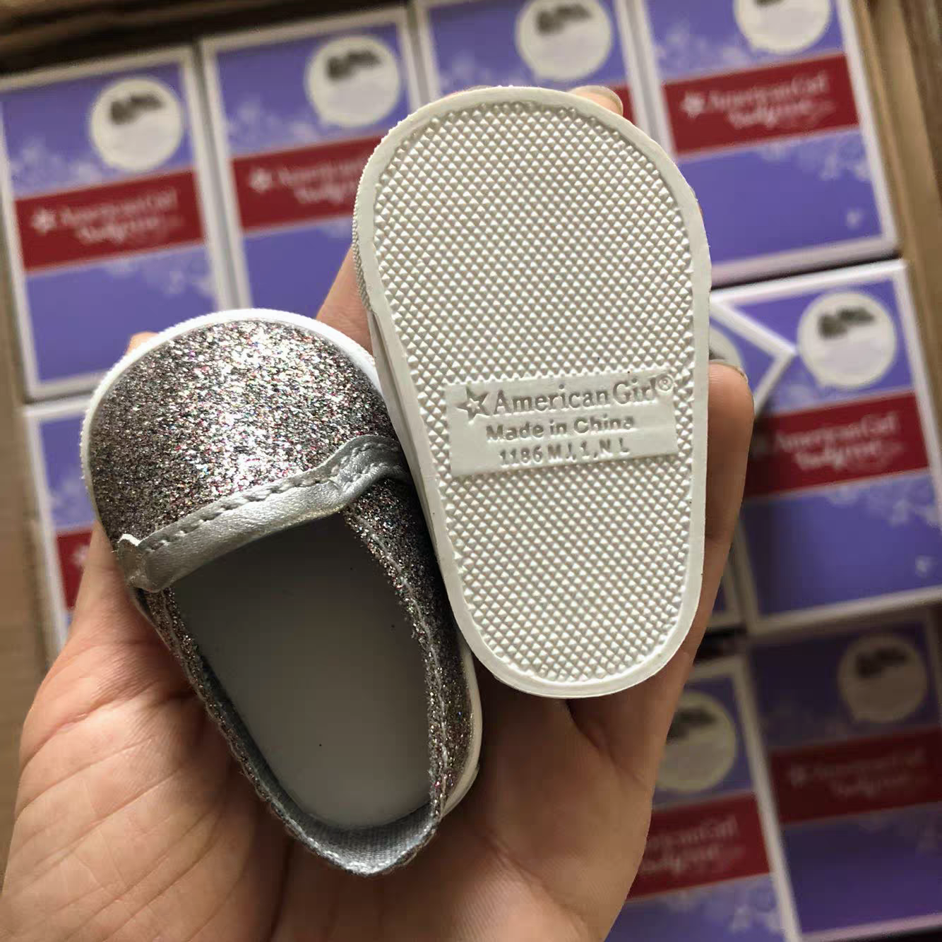These sparkly silver sneakers are absolutely adorable and perfect for any 18" doll! The quality is fantastic, and they fit just right. My doll looks so stylish now—definitely a must-have accessory. Plus, free shipping over $30 is a great deal. Highly recommend!