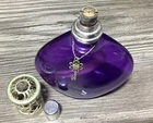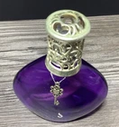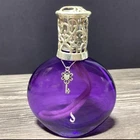 Enhance your home with this beautiful Deep Purple Glass Oil Lamp Burner from ODM. Handmade with intricate details, this Art Nouveau-style burner measures 10cm x 9cm and comes with a metal top and a key charm. The glass is hand-blown, making each piece unique. This oil burner is perfect for all occasions and any room in your home. Use it with your favourite fragrance oils for aromatherapy and create a relaxing atmosphere. The wick ensures a clean and easy burn, and the size of 10.5cm x 9cm x 14cm is just right for any space. Bring a touch of elegance to your home with this stunning oil burner.