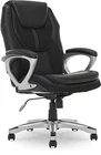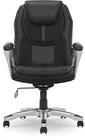 Made with gamers and programmers in mind, this executive office chair delivers deluxe features with a stylish, modern look. This black leather office chair features a specially designed ergonomic seat and a contoured lumbar to provide customized support, improve posture, and reduce stress in the back, neck, and shoulders. The pneumatic seat height adjuster works with a simple weight shift, making it easy to find the right fit for you, while the rolling casters offer smooth portability and movement. Made with faux leather upholstery and breathable mesh accents, this office chair sports a sleek, race-car-inspired design. Whether you’re working on a presentation at the office or booting up a game at home, the ergonomic office chair will make you feel like you’re sliding into the driver’s seat of a high-performance race car. COMFORT MEETS PRECISION: Sleek office chair designed with gamers and programmers in mind ERGONOMIC SEAT AND LUMBAR SUPPORT: Customized to help reduce stress in back, neck and shoulders RACE-CAR-INSPIRED DESIGN: Leather upholstery with breathable mesh accents GREAT FOR WORK OR PLAY: Helps keep you comfortable and relaxed whether you’re working or kicking back VERSATILE AND MOBILE: Adjustable height settings, convenient swivel design, and rolling casters