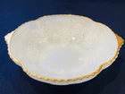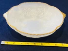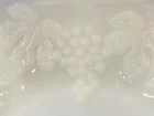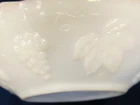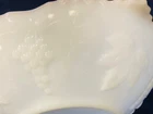 ANCHOR HOCKING- 10" WHITE MILK GLASS SERVING BOWL- GRAPES & 22K GOLD- VTG. USA! MADE IN USA. STUNNING PRESSED ROUND MILK GLASS SERVING BOWL WITH "GRAPES" DETAIL & 22K GOLD TRIM! MEASURES 10" LENGTH (TOP- INCLUDING HANDLES), 8.5 IN WIDTH (TOP), 4.75" DIAMETER (BASE), 2.75" HEIGHT. VINTAGE- RETIRED. 1 OWNER- STORED FOR YEARS. SMOKE FREE HOME. EXCELLENT CONDITION - NO CRACKS, CHIPS, STAINS, CRAZING, ETC. (SEE PICS). COMBINED SHIPPING AVAILABLE - WAIT FOR MY INVOICE * BID WITH CONFIDENCE - INCLUDES TRACKING & INSURANCE! **CHECK OUT MY OTHER VINTAGE GLASSWARE ON EBAY!!**