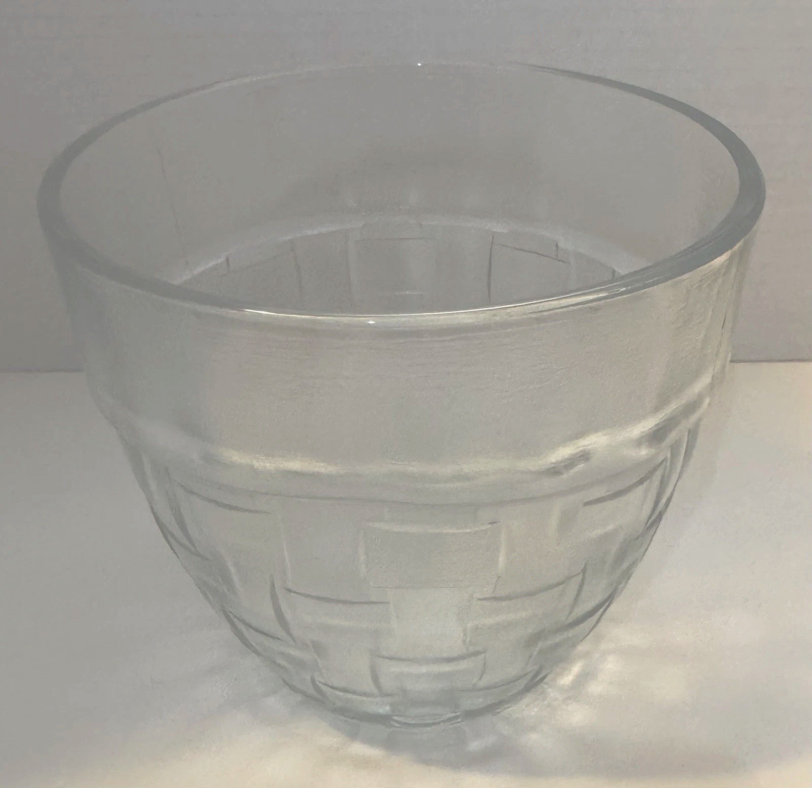 Used but in excellent condition. No cracks or chips. Elevate your dining experience with the Anchor Hocking Clear Glass Basket Weave Mixing Serving Bowl. With a classic basketweave pattern, this piece combines timeless elegance with the durability of high-quality glass. Ideal for both everyday use and special occasions, the bowl measures 5.25 inches, making it perfect for serving salads, fruits, or even as a charming decorative accent. Crafted by Anchor Hocking, a brand synonymous with quality and tradition, this serving bowl is a must-have for any home. The clear glass allows for easy monitoring of the contents, while the intricate basketweave design adds a touch of sophistication to your table setting. Whether you're hosting a dinner party or enjoying a quiet meal at home, this serveware piece is sure to impress.
