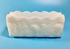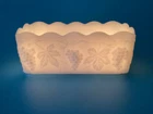 Anchor Hocking Fire King Ware USA Rectangle Milk Glass Planter Candle Holder is a stunning piece of mid-century modern decor. Milk glass production style gives it a glossy finish that complements the intricate Grapes & Leaves pattern. The item is signed by Fire King and the model is Anchor Hocking Fire King. It is suitable for flameless/LED candles, electric votive candles, and tea lights, making it a versatile addition to any room. The item is original and vintage, manufactured in the United States during the mid 20th century (1941-1969) and weighs 1lb 10oz. We kindly ask that you closely review the item descriptions, as well as photos. If unable to view photos, please contact us prior to check out. All items are researched and described to the best of our ability. We are passionate about finding new homes for antique and vintage items, but by no means experts. Any errors in descriptions are not intentional and NEVER intended to mislead a potential buyer. Photos will always reveal noticeable defects and considered as part of the description. Request Return to Seller within 5 days of receipt of your item and mailed back within 14 days of receipt. Item must be packed as it was received, photos of unpacking the item required for return. Buyer to pay return shipping to Seller, original shipping fee to Seller nonrefundable. All items are sold as is. Thank You for visiting our shop, please follow us so you are notified of new items that are added daily. **Non-smoking home.