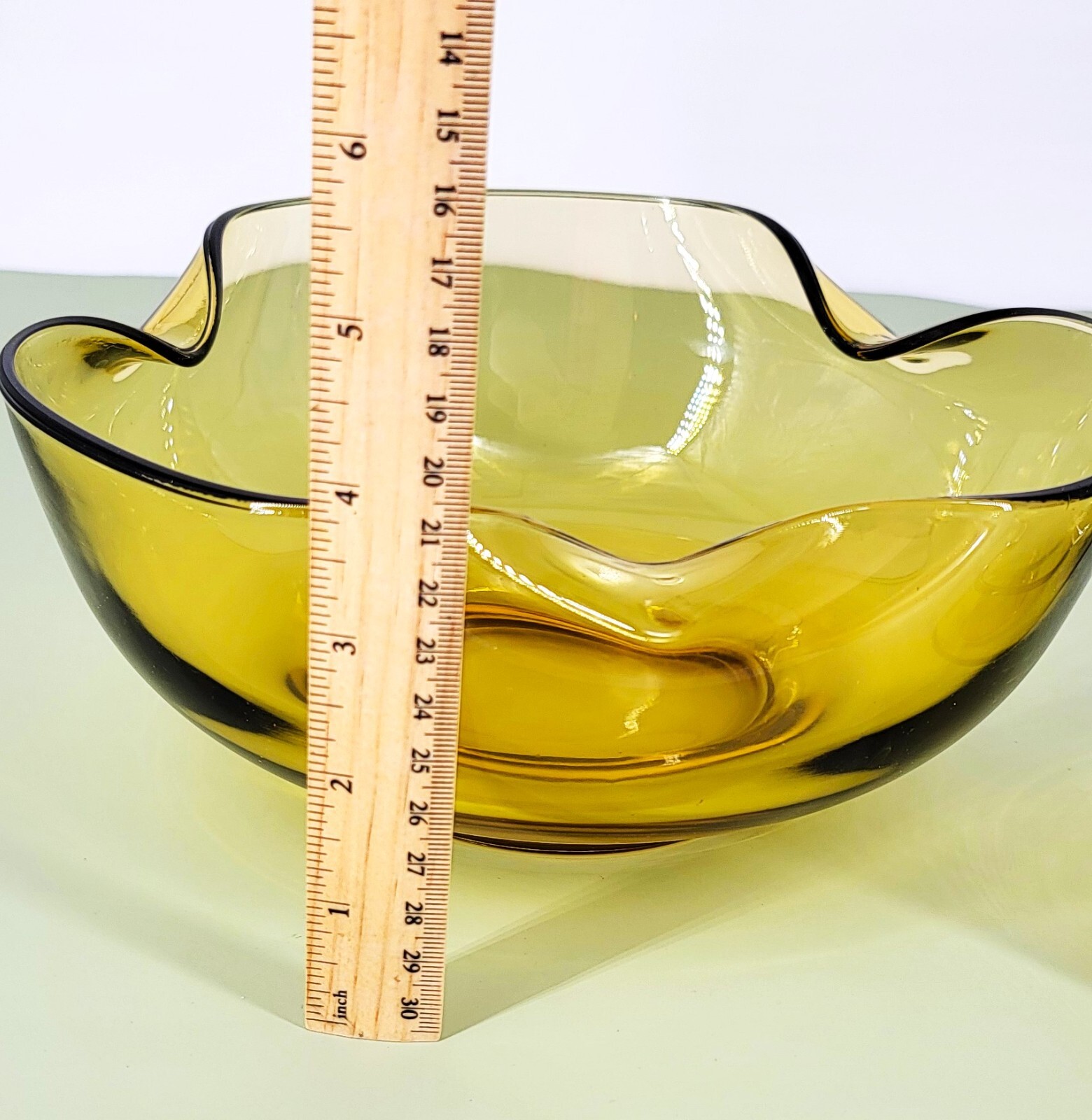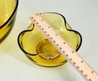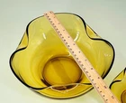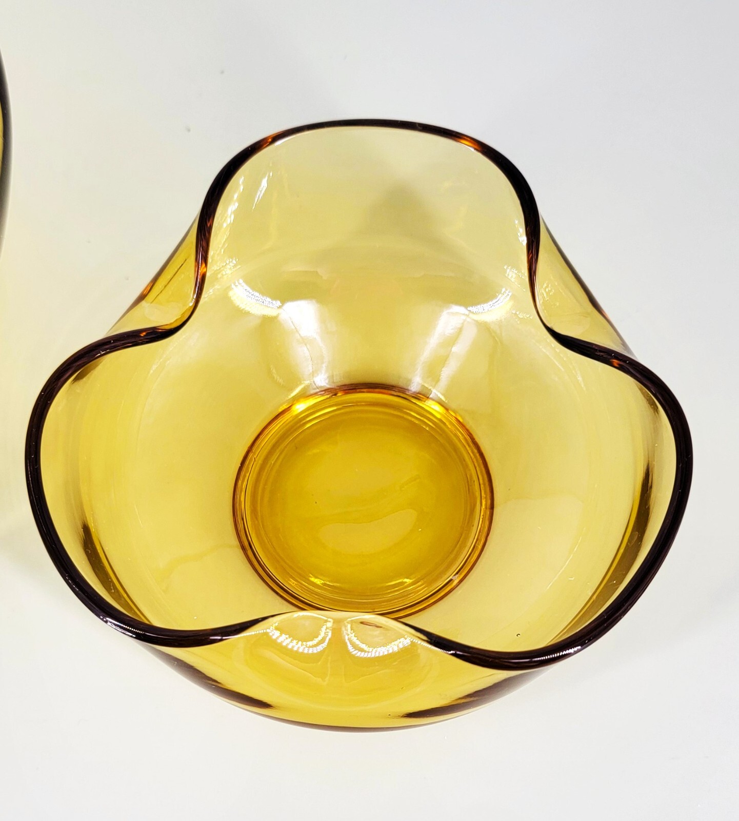 BRAND: Anchor Hocking Retro Honey Gold 2 Piece Scalloped Chip and Dip Vintage Art Glass, Mid-Century. Perfect for decor or for entertaining. Curvy and Chic!! LOC/N-2 COLORWAY: Honey Gold SIZE: Large Bowl Approximately 4" Tall and 9" Across. Small Bowl Approximately 2.5" Tall and 5" Across. CONDITION: Please see my photos for exact details, as they are part of the description. I have found no signs of chips, cracks or issues. Thank you for shopping with me today and I will consider reasonable offers. Have a wonderful evening!