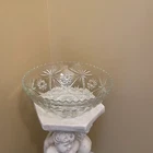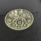 Anchor Hocking Large Round Clear Glass Bowl Sunburst and Star of David Pattern Deep Cut Early American Pressed Glass Gently Scalloped Sawtooth Edge Excellent Vintage. Here is a lovely vintage Anchor Hocking clear deep cut EAPG bowl with the Sunburst and Star of David pattern and stunning refraction. This is a very popular pattern in brilliant deep cut glass with hobstars and fan motifs and gently scalloped sawtooth edge. Approximate date of production is 1940-1989. Weight 3.6 lbs. Diameter 11 inches. Height 3 1/2 inches. This beautiful bowl is in excellent vintage condition, no cracks or chips or flaws. It would make a wonderful serving bowl or fruit bowl, possibly a great gift idea. (Note there is a matching vintage Anchor Hocking smaller gondola shape bowl, same clear EAPG deep cut glass with same pattern and design, also in excellent condition. 1960-1989 Both are sold separately or make an offer on both together.) (see pics in my listings). Vintage Note: Please remember that vintage and antique items have already had a previous life. Therefore, there may be an occasional imperfection. I take great care to describe any flaws and provide correct information about the age and details of the items. It's helpful if you study the pictures carefully to feel secure in your purchase. Shipping: I ship Monday through Friday, and Saturday before noon, via USPS Priority insured with a tracking number. All my items are double boxed and carefully packaged so your purchase arrives safely.