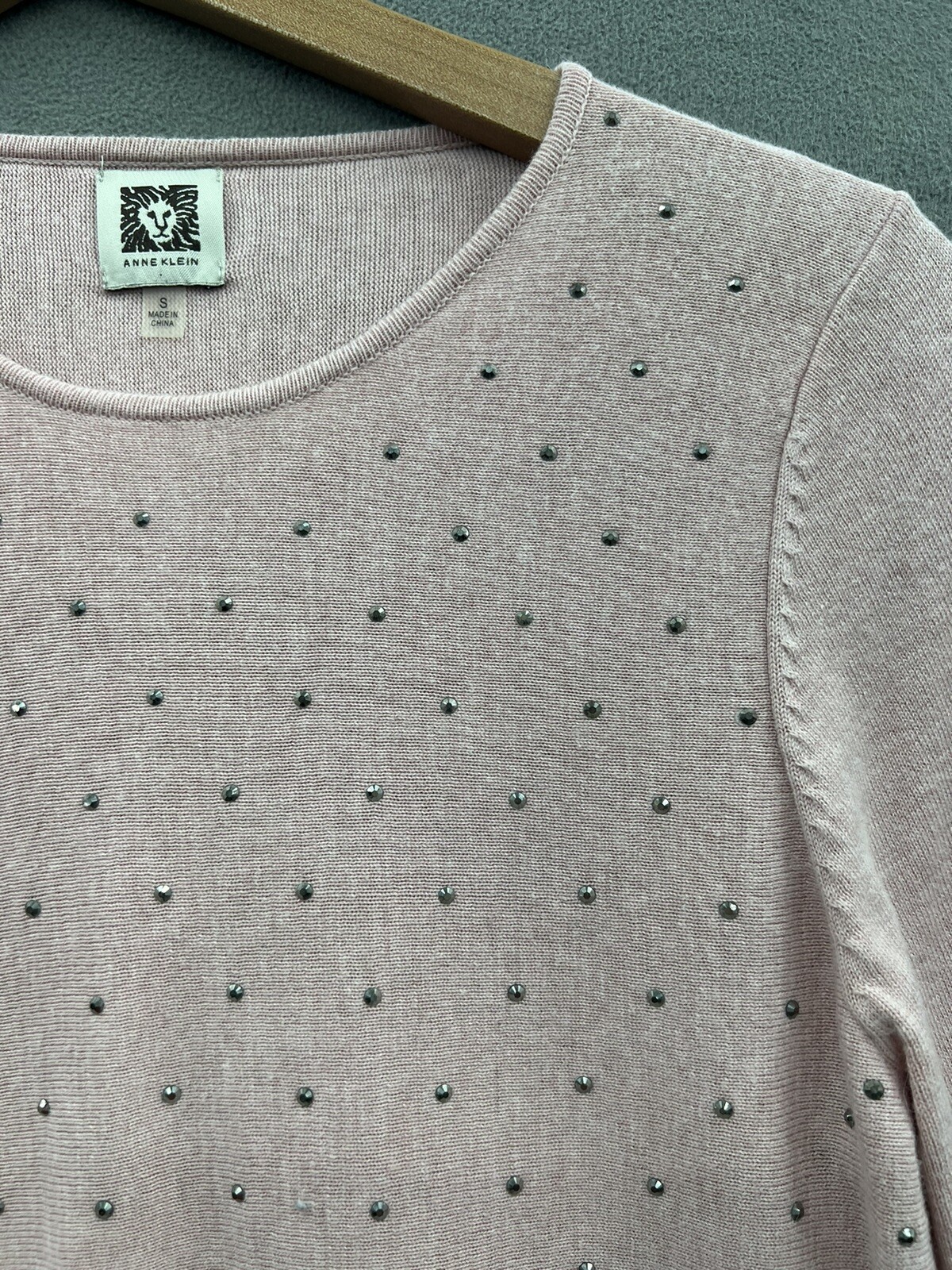 Elevate your fashion game with this stunning Anne Klein sweater in pink. The tight-knit design offers a cozy and comfortable fit, while the asymmetrical sleeve and studded accents add a touch of edgy glam. The sweater features a round neckline, long sleeves, and is perfect for any occasion, be it a party or casual outing. This pullover sweater is suitable for the fall, winter, and spring seasons. It comes in a size small and is ideal for women looking to make a fashion statement. Don't miss out on the chance to own this stylish piece from a reputable brand like Anne Klein.