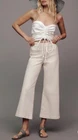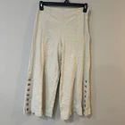 Anthropologie Linen Blend Ivory Cropped Wide Leg Side Button Pants Size 4 Small. Condition is Pre-owned. Shipped with USPS Ground Advantage.