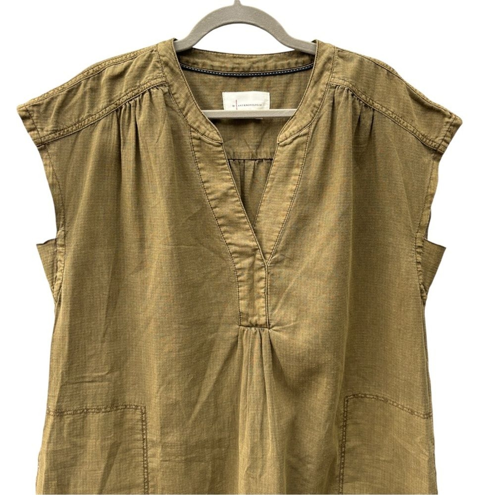Anthropologie “Kimber” Mini Dress Shift Dress Tunic Dress Army Green Color Side Pockets Cap Sleeves Boxy Oversized Linen Blend 55% Linen, 45% Cotton Machine Wash Wear Loose or Belt It! A Closet Staple! Dress Up with Over the Knee Boots and a Blazer Dress Down with Leggings and Sneakers Super Cute Women’s Size M (Oversized - See Measurements) Approximate Measurements: Chest Flat Lay: 23” Total Length: 36” Excellent Condition Bin H