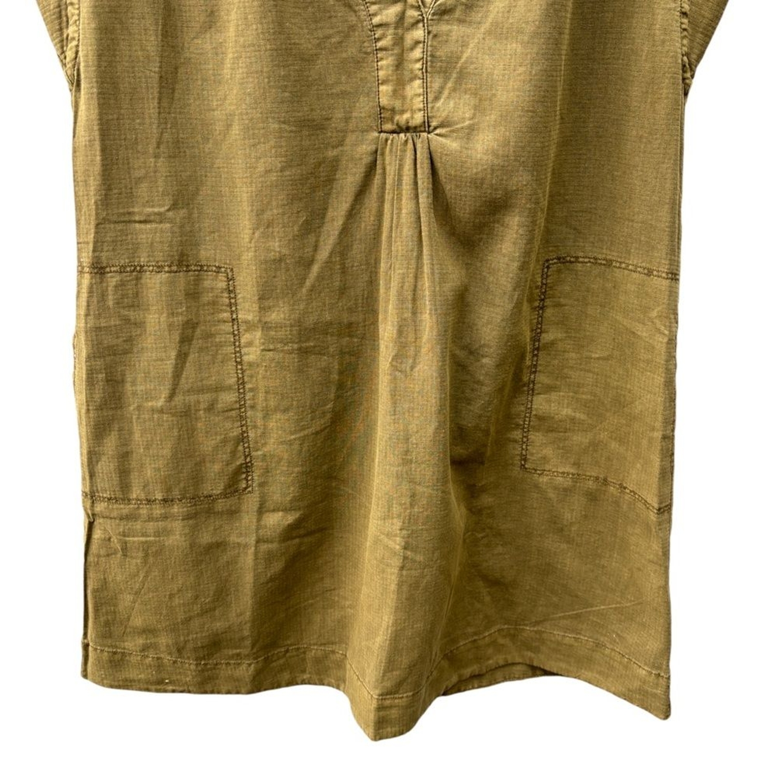 This dress is a must-have! The army green color is so versatile, and the oversized fit is effortlessly chic. Love the side pockets and the breathable linen-cotton blend—perfect for any season. It’s super easy to style, whether dressed up with boots or kept casual with sneakers. The boxy silhouette gives it a cool, laid-back vibe while still looking put-together. Great condition, true to size (oversized fit as described). A total closet staple!