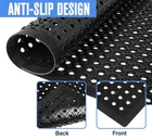 Return Policy Fast Delivery Trusted seller Anti Fatigue Mat, 36"x60" Rubber Floor Mat, Non-Slip Rubber Floor Mat Heavy Duty Mats for Outdoor Restaurant Kitchen Bar (Black) Product Description 【Non-slip Drainage Mat】Anti-slip drainage mat design – engineered with large hexagonal holes, this rubber drainage mat effectively captures and drains liquids, preventing dangerous puddles from forming. This makes it ideal for use as a commercial kitchen mat w grease and water can cause hazardous slipping. Its anti-slip surface keeps the mat securely in place, ensuring safety in bustling environments. 【Drains and Dries out Outside Mat】 Designed for tough conditions, this mat excels as a bar mat for floor or as an outdoor drainage mat for patios, decks, or entrances. Its large drainage holes promote rapid drying, preventing standing water from causing damage or slippery surfaces. 【Multi-Functional 】The rubber floor mat perfect for both indoor and outdoor settings such as shops, restaurants, patios, boats, bars, and homes. This 36"x60" heavy-duty mat offers comfort and protection, while being easy to clean and ideal for high-traffic areas. 【Heavy Duty Rubber Floor Mat】Made of high-grade rubber, this drainage mat provides superior durability and long lasting performance. Weighing 14.3 LB, Size: 60 x 36 x 0.4 in. 【Easy to Clean】Wipe or hose clean with soap and water. This mat is sustainable, durable, and resistant to water. Its easy to clean surface ensures that dirt, grease, and liquids can be quickly washed away. Shipping Returns Payment Shipping Shipping is FREE to all addresses other than APO/PO boxes in the lower 48 states. All our stock ships from US-based warehouses. Shipped via USPS or UPS (depending on location and package weight) Unless stated otherwise, all orders will ship within 24-72 hours of your payment being processed. Check our feedback to see the great reviews of FAST shipping we offer. Returns Seller does not accept returns Payment We currently accept payment via eBay managed payments only. Once payment is cleared, we will dispatch your shipment within 1-3 business days. Please refer to the "Shipping" tab for more information regarding shipping speed to your destination.