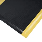 Anti Fatigue Standing Mat: Antistatic anti-fatigue ground upper layer made of anti-static rubber material, the middle layer is composed of EPDM foam cotton, the bottom layer is conductive rubber, 15/16 inch thick, dimensions is 3 x 5 FT. Non-slip surface: The textured surface and smooth beveled edge design help prevent slipping and tripping. The yellow border strip design provides a warning effect. The rubber surface is bonded to the cushion, ensuring it remains firmly attached for increased longevity. Versatile Comfort Floor Mat: Extra thick sponge mat comfortable feet, effective in reducing stress and pressure on feet, knees and lower back over long standing periods, greatly reducing the fatigue of standing for a long time. Protect products or tools dropped during work from damage, thus reducing production costs. Border Safety Mat: Heavy duty Industrial floor mat Beveled edges design, more close to the ground seamless, which provides a better grip for the mat and is not easy to move. prevent tripping, fit the ground without warping, not open glue, not collapsing. Versatile: Whether you are repairing the car in the garage, working in the factory, standing at the desk, cooking in the kitchen, or washing in the laundry, you can use this kitchen mat.