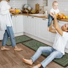 Comfort Anti-fatigue Kitchen Mats:0.47 inch (12 mm) extra thick anti fatigue kitchen floor mat are sure to provide cushion on your feet, knees, lower back, and joints for standing.Feel comfortable when you are cooking in kitchen or working at your standing desk 2PC Kitchen Rugs:The kitchen mats contain 2 rectangular rugs (17 x 47 inches and 17 x 29 inches), 2 Pcs kitchen mats may be used separately or in combination to meet different needs.The mats are made of premium materials, which are friendly to your kids and pets Anti-Slip Standing Mats:Equipped with a non slip rubber bottom so that the mats stay in place both on hard or carpet floors.The beveled edges of the kitchen mats help prevent tripping,fully protect you and your family's safety.Tip:Should be placed on dry surface during use Easy Clean & Waterproof:The cushioned kitchen carpets is stain resistant,waterproof and easily cleaned.Simply wipe the floor mat with a damp cloth or sponge or use a hand-held vacuum as needed,save your time and energy Versatile:Farmhouse style kitchen rug with floral pattern easily to match your kitchen decor, bright your home.Soft thick foam provides ample support for standing in kitchen sink, laundry room, office, bathroom, dinning room, or any other high-traffic area
