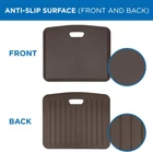 ANTI FATIGUE MAT: This ergonomic thick comfort mat provides cushioned support for your knees and feet for long periods of standing. Relieving pressure in your legs can help reduce lower back pain. MULTI-USE COMFORT MAT: A versatile stand up mat great for the kitchen, garage, standing desk workspace, salon or anywhere you are on your feet a lot. A simple, effective way to improve workplace comfort! Pairs great with your stand up desk workstation. STANDING DESK FLOOR MAT: This rubber standing mat features beveled edges and an anti-slip top and bottom for safety. Features a built-in handle for easier portability. EASY TO CLEAN: This ergonomic mat is made to withstand heavy use. The rubberized gel foam is water resistant and can be vacuumed or wiped with a damp cloth. Stain resistant and easy to maintain. THE MOUNT-IT! PROMISE OF EXCELLENCE: Designed and built with high-quality materials and innovative designs. Reach out to our friendly and responsive US-based customer support team to answer any questions you may have during normal business hours. Standing for long periods of time on hard surfaces can put undue stress on your back, hips, knees, ankles and feet, causing not only significant pain but also muscle and joint fatigue. Say goodbye to tired joints or muscle pain from standing for long periods of time with Mount-It! Anti-Fatigue Mat. This premium quality mat promotes good posture and helps eliminate tension to give superior support in home kitchen, standing desk, garage, laundry, workstation or anywhere you need to stand for long. Dimensions: 18"x22"x0.75" Net Weight: 2.2lbs Color: Brown Reduce Stress and Fatigue from Prolonged Standing Maximum Comfort and Durability Ergonomically engineered shock absorption, our mat stimulates blood circulation, provides strong sole support, and reduces fatigue and pain on back, hips, legs and feet caused by prolonged standing. We use the most durable and high quality materials that provide unmatched tensile strength to resist tearing and will not break down or compress over time, and work well even in heavily trafficked areas. Easy-to-Clean Resistant to stains, abrasions and punctures, it is made with easy-to-clean water resistant material that can be vacuumed or wiped with a damp cloth. Trip-Resistant Beveled Edge Contoured beveled edges and a no-curl design allows the mat to stay in place while reducing trip hazard. Unique Handle Design Unique to other mats, it has a handle that makes it easier to move around when you want to clean the floor. Anti-Slip Surface Features a steady grip, textured, non-skid front and back surface that assures maximum safety, effectively preventing slipping accidents.