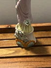 This Antique Chinese Gilt with Famille Rose Porcelain Guanyin Statue stands at 12 inches tall, showcasing intricate handpainted details and being signed by the Chinese Scholar Artist who created it. The statue depicts the theme of Kwan-yin, originating from China during the Republic / PRoC period. With a rich multi-color palette and being an antique original piece from the early 20th century, this Guanyin statue is a beautiful and culturally significant collectible for those interested in Asian antiques.
