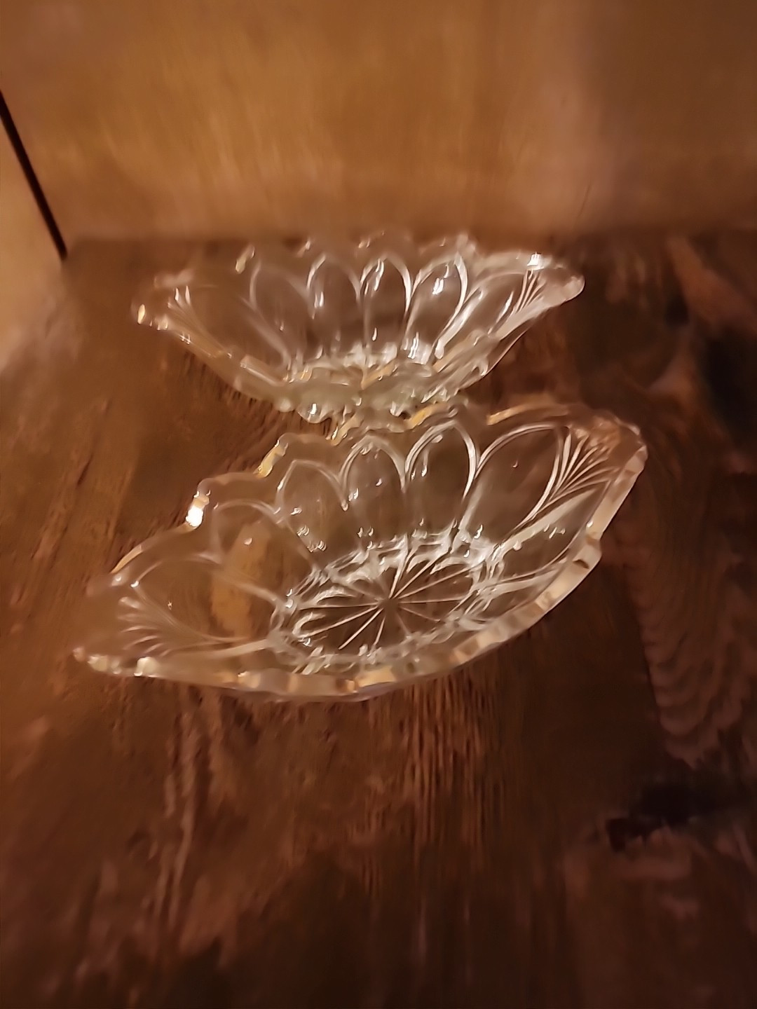 This antique oblong bowl is perfect for serving pickles and comes in a set of two.