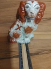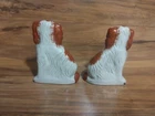 These antique figurines of King Charles Spaniel Dogs are a rare find for collectors of English Staffordshire memorabilia. Standing at 5 inches tall, 4 inches wide and about 2.25 inches deep each these figurines depict two charming dogs that are sure to add character to any collection. They are in great condition. They do not have any damage (chips, cracks, repairs). They do have crazing throughout. There is some minor paint loss. Please inspect photo(s) carefully. Pictures should be considered part of the description. Please ask any questions BEFORE purchasing.