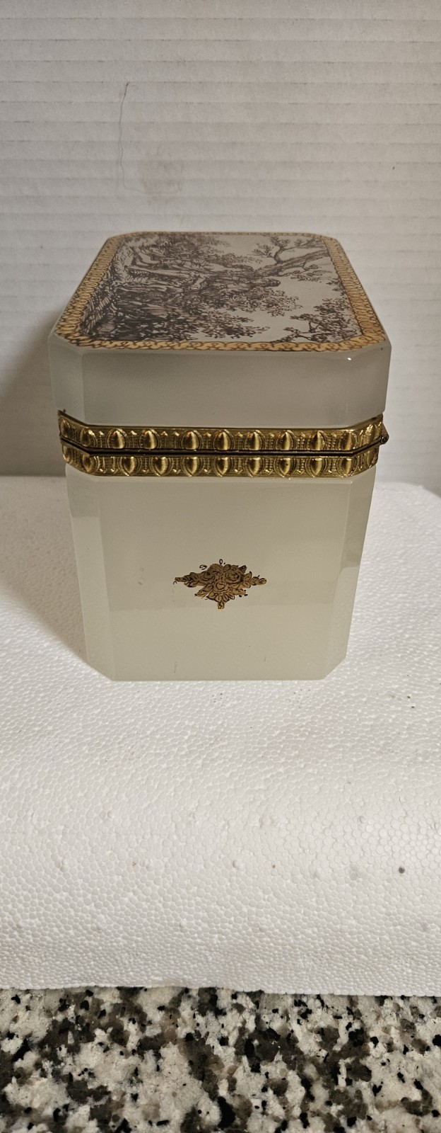 This Antique French Opaline Beautifully Etched Storage Box exudes elegance and charm with its French style detailing and antique finish. The intricately etched design adds a touch of sophistication, making it a stunning addition to any collection of decorative boxes. Perfect for storing small trinkets or jewelry, this box brings a touch of vintage glamor to any space.