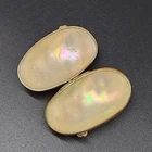 This exquisite antique pill/trinket box is crafted from lustrous mother of pearl, featuring a unique clamshell design and elegant metal trim. Its compact size makes it a functional and stylish addition to your collection, and its antique appeal adds a touch of sophistication to your personal items. • Clamshell design with metal trim • Antique age • Compact and portable • Height = 1.75 inches. Very good antique condition. One minor surface crack on the inside of the piece. The gilt ormolu has a very heavy patina. See photos for details.