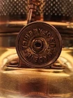 Antique brass and glass globe Gone With The Wind parlor lamp. Reddish pink colors.