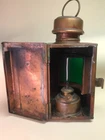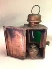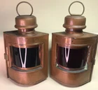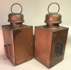 FROM MADEIRA WITH LOVE...! Found in an estate liquidation on Madeira Island Portugal, from the estate of a retired antiques dealer. Pair of small, scaled Nautical sidelight oil powered lanterns, one for starboard and one for port. They retain a red and green glass insert and the glass is in good order Found in Portugal, they stand 7 1/2 inches tall, measured from the table to the top of the ring handle. Two flaws detected...... Only one retains the original removeable oil lamp insert. One has none. One door catch is missing part of the tab. Everything else looks to be in good order. This listing is for the two lamps as a lot. I inserted a standard size playing card in one photo as a reference for size. MUCH OBLIGED