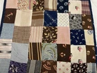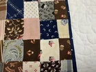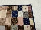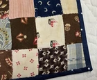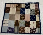 Up for sale is an antique/vintage patchwork country quilt table topper. Rectangle. The design is four patch. Squares measure 1 1/2” by 1 1/2”. The fabrics are very early calico prints, florals, shirting fabrics, stripes, dots, checks. This table topper is made from an antique quilt top from the late 1800’s to early 1900’s. The colors are brown, off white, beige, red, navy blue, blue, dark brown, pink, white, multi. The border is navy blue and white dot calico print, hand sewn. The back is navy blue and white dot calico print. Tacked at center. Medium thickness. Very, very good condition. A few age spots. Measures 10 1/4” by 9”. Cotton. Hand made. Made in USA. Vintage/antique table topper cut down from an antique quilt top. Border and back fabric is not vintage. Not hand quilted. 💗💗💗🌼🌻 Thanks and happy shopping. I will combine shipping charges. Smoke free home. Please make payment in three days ~~~~🌹🌻🌷Please visit my eBay store: 🇺🇸webbsamericancountry1🇺🇸 for over 2000 vintage and collectible items.~~~~🌺🌼🌹