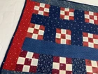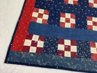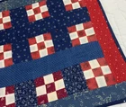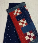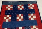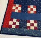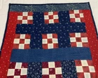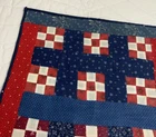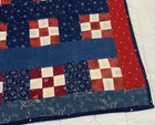 Up for sale is a vintage antique patchwork quilt table topper, doll quilt or accent quilt. Patriotic and festive. Great colors. The pattern is mini nine patch, 3 rows of 3 in each row. The mini 9 patch squares measure 3/4” by 3/4”. The fabrics are early calico prints, solids, florals, mini dots. The colors are red, white, navy blue, medium blue. The border is navy blue dot calico print fabric. The back is navy blue dot calico print fabric. Border is hand sewn. Medium thickness. Tacked at center Very, very good condition. From the early 1900’s. Hand made. Made in USA. Antique quilt table topper. Made from a vintage antique patchwork quilt block. From the late 1880’s era to early 1900’s. Measures 14 1/4” by 13 3/4”. Very, very good condition. No spots. Vivid colors. Back fabric is not vintage. Not hand quilted. *** Refer to dimensions for size of this item. Please refer to all pictures as they are a part of this description. 💗💗🌷🇺🇸🐦⬛ Thanks and happy shopping. I will combine shipping charges. Smoke free home. Please make payment in three days. ~~~~🌹🌻🌷Please visit my eBay store: 🇺🇸webbsamericancountry1🇺🇸 for over 2000 vintage and collectible items. 🌺🌼🌹