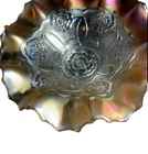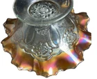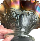 This beautiful antique decorative bowl by Dugan features a stunning peach/marigold color with an elegant round shape and a glossy finish. The bowl is adorned with a gorgeous antique rose pattern that adds a touch of vintage charm to any setting. Crafted from high-quality glass material, this bowl is perfect for all occasions and is a great addition to any collection. The item measures 8" in width and 4" in height, making it a great size for displaying flowers or serving fruits. Hand wash only is recommended for this original early 20th-century piece, which is a must-have for any Victorian-style decor.
