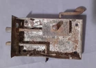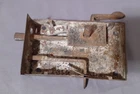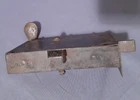 An antique hand forged Dutch Elbow rim latch missing one of the handles. See many photos for complete description and condition.