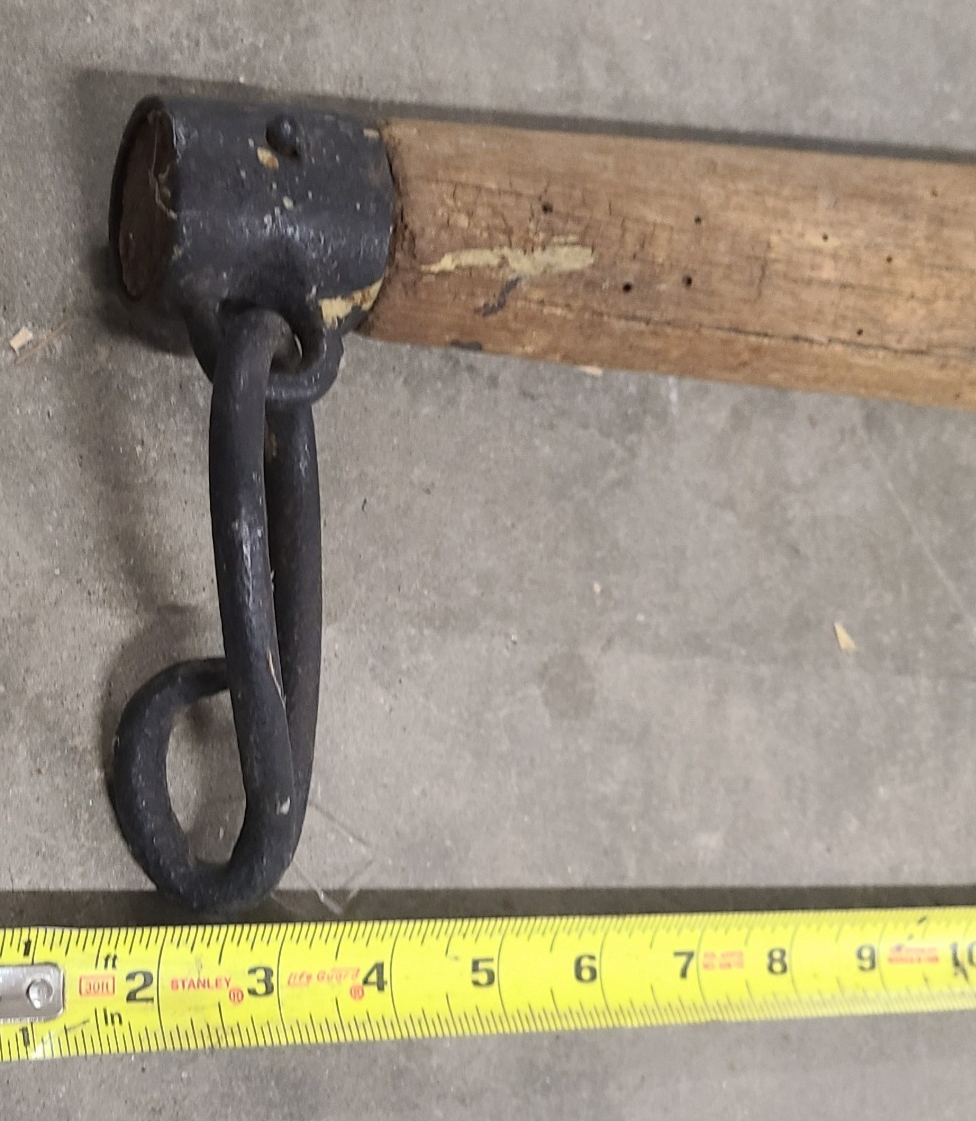 This is for a Antique Primitive Wood Cast Iron OX HORSE FARM Yoke Single Tree 36" Barn County. This is a well made yoke with iron end caps each with tear drop shape rings with hook's(see pictures) and a 3" ring in the center. The over all length is about 36" long and it's about 3" thick. This is very solid in great condition for it's age. Thanks for looking!