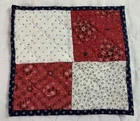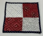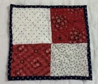 Up for sale is a vintage/antique quilt table topper or mini doll or teddy bear quilt, patchwork. The pattern is four patch. The fabric designs are early calico prints, florals, star prints. Great early fabrics. The fabrics are cotton. The colors are red, black, grey, blue, white. Vivid colors. The border is navy blue calico print, hand sewn. The back is navy blue calico print fabric. Medium thickness. Tacked at center. Made from a vintage quilt from the early 1900’s era. Hand quilted. The back and border fabric is also vintage. Measures 6” by 6 1/2”. Very, very good condition. Hand made. Made in USA. 🌹🌹🌹🌹 Thanks and happy shopping. I will combine shipping charges. Smoke free home. Please make payment in three days ~~~~🌹🌻🌷Please visit my eBay store: 🇺🇸webbsamericancountry1🇺🇸 for over 2000 vintage and collectible items. 🌺🌼🌹