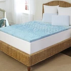 This Arctic Sleep by Pure Rest marbleized gel mattress topper offers boththe benefits of memory foam with the cooling properties of gel in this uniqueand functional mattress topper. Unlike many 'cooling' memory foam productsusing regular gel-beads that can separate and cause a mess, this specialmarbleized infusion of cooling liquid gel into the memory foam means thecooling properties of the gel foam are spread more evenly and thoroughlythroughout the topper to better help regulate the temperature while you sleep. Ifyou have a tendency to get very hot while sleeping, you can experience acooler, more inviting sleep thanks to the temperature regulating marbleized gelinfusion. The specially designed 5-zone support patterns are molded right intothe memory foam to help reduce pressure points Free Shipping Over $49.99* Details Arctic Sleep Marbleized 5-zone Gel Memory Foam Topper Product Description: This Arctic Sleep by Pure Rest marbleized gel mattress topper offers boththe benefits of memory foam with the cooling properties of gel in this uniqueand functional mattress topper. Unlike many 'cooling' memory foam productsusing regular gel-beads that can separate and cause a mess, this specialmarbleized infusion of cooling liquid gel into the memory foam means thecooling properties of the gel foam are spread more evenly and thoroughlythroughout the topper to better help regulate the temperature while you sleep. Ifyou have a tendency to get very hot while sleeping, you can experience acooler, more inviting sleep thanks to the temperature regulating marbleized gelinfusion. The specially designed 5-zone support patterns are molded right intothe memory foam to help reduce pressure points that cause tossing and turning,giving more support at higher compression levels so you get support preciselywhere it is needed. In addition, the topper is also ventilated to allow airflow and further help regulate heat build-up duringsleep. TypeMattress topper, cover not included Hypoallergenic Measures 1.5 inches thick Density:2.5-pound Comfort levelMedium Memoryfoam typeGel Care instructionsSpot clean only Afterunpacking, allow 24 hours for the topper to regain its loft Memory foam is sensitive to body temperature and changesshapes as you move to provide responsive support all night long for bettersleep Memory foam is resistant to dust mites and isnaturally antimicrobial Originally designed for NASA, thisspace age foam cradles your body, reducing pressure points that cause tossingand turning Temperature sensitive foam adjusts to your bodytemperature so you stay warm Improves circulation whilereducing pressure points that can disrupt your sleep Mattresseliminates motion transfer and uncomfortable pressure points Neverneeds turning Disperses your weight evenly Mattresscan be used with an existing frame Great for platform bedsand slatted frames Meets all flammabilitystandards Dimensions Twin:1.5 inches high x 37 inches wide x 73 inches long Full1.5inches high x 52 inches wide x 73 inches long Queen1.5inches high x 58 inches wide x 78 inches long King1.5inches high x 76 inches wide x 78 inches long Cal king1.5 inches high x 70 inches wide x 82 inches long MemoryFoam Tips: Remove from packaging within72 hours of receipt to maximize memory foam expansion. Thisproduct arrives very tightly packed. Unwrap and allow 48 hours for this productto return to its original shape. Being sealed in plasticpackaging sometimes traps odors. After unwrapping, allow product to air for afew hours. Due to machine-cutting manufacturing processes,there may be slight variances in the dimensions of this product. Dueto the nature of Memory Foam the firmness level of every item is unique. Pleasebe advised that even similar products may produce different firmnessresults. Topper dimensions may beslightly smaller than your mattress dimensions. Size has been designed to allowyou to easily secure your fitted sheet over your new memory foam topper. Pleasekeep this in mind when you place the topper on yourmattress. The digital images we displayhave the most accurate color possible. However, due to differences in computermonitors, we cannot be responsible for variations in color between the actualproduct and your screen. Click here to view mattress topper buyingguide. Once opened this product isnon-returnable.