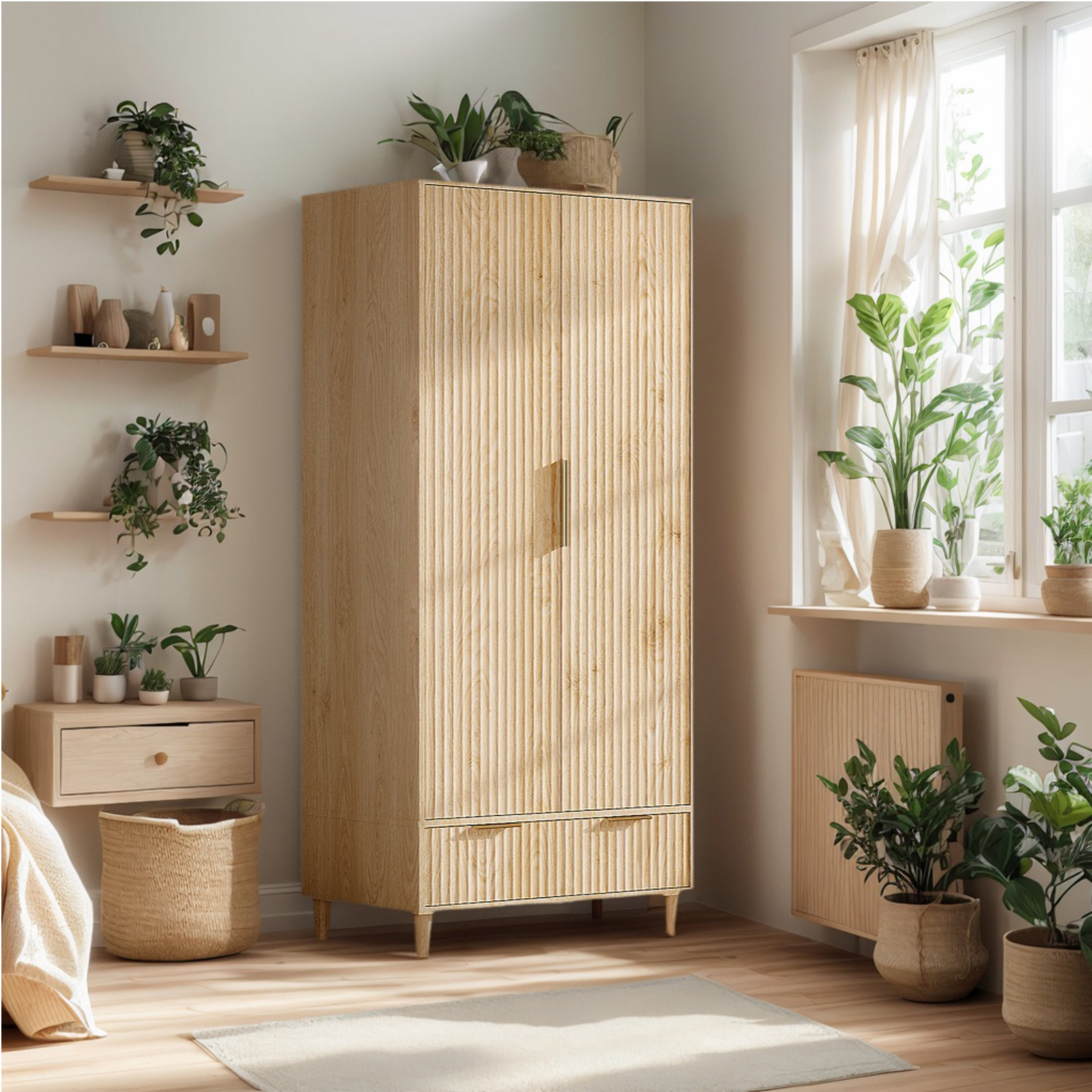 Wooden Wardrobe with Hanging Rail for Closet Storage Cabinet