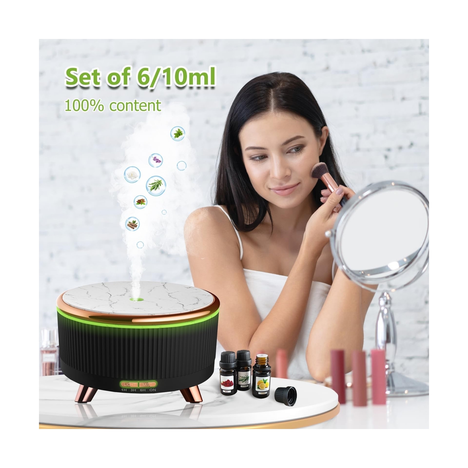 Essential Oil Diffuser for Home with 6 Essential Oils Set,500ml Diffuser with R/C 7 Colors Light & 3 Mist Mode Automatic Shut-Off,Aromatherapy Diffusers for Home,Office,Yoga,Spa,Gift Product Details Color: Black Brand: Elcxsla MPN: Essential Oil Diffusers UPC: Does not apply EAN: Does not apply Brand: Elcxsla Color: Black Scent: Lavender,Lemon,Orange,Rosemary,Sandalwood Recommended Uses For Product: Office, GIFT, SPA, YOGA, Home Material: Polycarbonate (PC), Polypropylene (PP), Acrylonitrile Butadiene Styrene (ABS) Brand: Elcxsla Color: Black Scent: Lavender,Lemon,Orange,Rosemary,Sandalwood Recommended Uses For Product: Office, GIFT, SPA, YOGA, Home Material: Polycarbonate (PC), Polypropylene (PP), Acrylonitrile Butadiene Styrene (ABS) Special Feature: Multiple Mist Setting, Multiple Light Setting, Cool Mist, Automatic Shut-Off, Timer Setting Power Source: Corded Electric Capacity: 500 Milliliters Floor Area: 45 Inches Squared Model Name: Essential Oil Diffusers for Home Product Dimensions: 7.48"L x 7.48"W x 3.15"H Material Type Free: BPA Free, Lead Free Light Source Type: LED Coverage: 380 Square feet Runtime: 20 hours Wattage: 14 Shape: Cylindrical Auto Shutoff: Yes Number of Items: 1 Manufacturer: Huizhou Yi Xuan Electrical Appliance Co, Ltd. Unit Count: 1.0 Count Item Weight: 2.01 pounds Item model number: Essential Oil Diffusers Batteries: 1 Lithium Ion batteries required. (included) Date First Available: November 26, 2022 6 Essential Oils Set :Essential oils set include:lemon essential oil*1+sandalwood essential oil*1+rose essential oil*1+lavender essential oil*2+orange essential oil*1.Essential oil is packed in boxes,more refined,100% pure.Travel diffuser,decompose quickly,breathe better.10ML brown bottles to effectively avoid light and prevent rapid degradation.Drip in the diffuser for bedroom,fragrance slowly spreads.Diffuser for large room makes the room full of romantic atmosphere Low noise diffuser: Essential oil diffusers use ultrasonic technology,working sound <25dB,essential oils for diffusers for home 2 million vibrations per second,fine spray,diffusers for essential oils bring you high quality sleep,scent diffuser can help you moisturize dry air, diffuser creates a quiet and warm atmosphere for you,Oil diffuser is baby travel,new home,office,desk Longer working time & Fragrance functionAroma diffuser has a 500ml water tank,It can run for over 20 hours.Reducing the frequency of adding water.Diffusers for essential oils provide heavy/small/30 seconds intermittent mist mode,add a few drops of essential oils to the oil diffuser large room,ultrasonic for instant evaporating moisture and aromatherapy oils,essential mist diffuser add fragrance to your room and create a romantic atmosphere,bring you a new mood.Ultrasonic diffuser is large,cute,As a gifts for As a gift for lover 7-colors light effect & Remote control:Air diffuser for essential oils are suitable for use in all room,with remote control,can be controlled from a distance,air mist diffuser with fog/lighting/timer mode,diffuser oils scents has 7 kinds of LED lights to choose,the color of waterless diffuser can be cycled or set to a fixed color,essential oils for diffusers aromatherapy will automatically colse if the water is used up,aromatherapy diffusers will make you relax and have a good sleep Essential oil diffuser:Humidifier with essential oil diffuser is designed with marble gold plated and matte finish,cordless diffuser for essential oils is designed to raise the water outlet,desktop will not accumulate water,aroma diffuser is a home decoration,diffuser can be suitable bedroom,sparoom,house warming gifts,dorm room apartment essentials decor,enjoy the beauty of life in summer Exquisite GiftsScent diffusers for home is made of high-quality materials,oil diffusers can be placed in the baby room or perfectly matched with any decoration in the home,decorations for bedroom,the essential mist diffuser has non-slip foot pads,which is stable and not easy to fall,room diffuser are Large water inlet design,easy to clean with water,large diffusers for essential oils can be used as holiday gifts for teen girls,friends,mothers and wife.