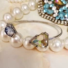 Elevate your style with this stunning Artisan bracelet, perfect for any nature-inspired outfit. The silver bangle is adorned with a beautiful blue Lapis stone and shimmering Aurora Borealis crystals, adding a touch of elegance to your look. Handmade with natural stones, this bracelet is a unique piece that will make a statement in any collection. The Artisan brand is known for their high-quality jewelry, and this bracelet is no exception. Whether you're dressing up for a special occasion or adding a touch of sophistication to your everyday look, this bracelet is the perfect accessory. This vintage-inspired cuff flaunts a slim silvertone band that is capped on either side by Lapis & sparkling crystal accent stones for glamorous allure. Simple yet elegant! 3" W Silvertone/crystal