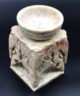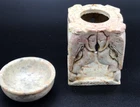 Asian Carved 2 Piece Soapstone Aroma Elephants Tea Light Oil Burner Diffuser 4” x 2.5”. Small chip on bowl- see pictures!!