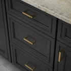 The Asymmetric Notched cabinet pull collection makes it easy to give an updated look to your kitchen, bathroom, office, or furniture. The Modern cabinet handle design makes it the perfect addition to your cabinets, desk, and even dresser drawers. Available in multiple finishes and pack sizes to fit any home decor project and cabinet hardware style. STYLE: Easily update your kitchen and bathroom cabinets or furniture with our modern cabinet hardware collection. MATERIAL: Our brushed brass finish provides a complimentary tone to the metal handles. SIZING: The collection of drawer pulls measures 3 (76mm) center-to-center and comes in a pack of 10, so you can make your cabinet upgrades in bulk. DURABLE: We work with highly durable materials to ensure your cabinets and drawers are equipped with top quality hardware that will last for years. EASE OF USE: Our asymmetric notched cabinet pulls are specially designed for easy installation and use.
