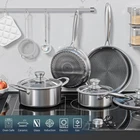 AuFranc® Hybrid Nonstick Stainless Steel Pots and Pans Honeycomb 7pcs, Silver Product Details Material: Stainless Steel Color: Silver Brand: Aufranc Size: Honeycomb 7pcs Handle Material: Stainless Steel Is Dishwasher Safe: Yes Material Type Free: Cadmium Free, PFOA Free, PFAS Free, Lead Free Compatibility Options: Compatible with All Cooktops & Dishwasher Safe Number of Pieces: 7 Closure Material: Glass Lid Included Components: Frying Pan & Saucepan & Stockpot & Tempered Glass Lids Is Oven Safe: Yes Item Volume: 6 Gallons Cookware Set Is Compatible With: True With Lid: Yes Manufacturer: Aufranc Is Cookware Induction Compatible: Yes Manufacture Year: 2025 Special Feature: Gas Stovetop Compatible, Electric Stovetop Compatible, Induction Stovetop Compatible Package Dimensions: 17.68 x 11.73 x 6.73 inches Item Weight: 11.05 pounds Country of Origin: China Item model number: Aufranc-KH7PCS Packaging Includes: 1 Saucepan with Glass Lid (Ø 16 cm/1QT), 1 Stockpot with Glass Lid (Ø 20 cm/2.5QT), 1 Frying Pan with Glass Lid (Ø 24 cm/2QT) and 1 Fry Pan without Lid (Ø 20 cm/1QT). The Aufranc 7-piece stainless steel Pots and Pans Set is ideal for everyday use by 4-6 people, and the boxed packaging is also perfect for gifting to friends and family! Practical & Healthy: The nonstick cookware set is made of high quality 18/10 stainless steel, which is strong and durable to prevent scratches, corrosion, warping and rusting. A honeycomb carving is etched into the interior of the cookware, making it 10 times more non-stick than traditional stainless steel pans! Non-toxic, Free of PTFE, PFOA, PFAS, lead, cadmium and other toxic substances. All Hobs & Oven Safe & Dishwasher Safe: Tri-Ply structure for fast heat conduction and even heating, making it suitable for use on any type of hob, including induction, gas, halogen and electric. Oven safe up to 480℉/250°C (Safe to 210°F/100°C with Glass Lid). Enjoy easy cleaning with the Dishwasher Safe Kitchen Cookware Set! Art & Life: The mirror-polished stainless steel cooking pot and pan set has a gorgeous, elegant exterior that complements the honeycomb-carved interior. The glass lids allow you to see the food change as it cooks, and the double riveted stainless steel handles stay cool at all times. Enjoy this artful and lifestyle set of stainless steel non stick cookware! Aufranc's Promise: Aufranc is a company with a source factory and we promise that you can get the same quality products on the market at the best price with us!