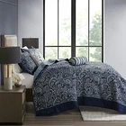 Return Policy Fast Delivery Trusted seller Aubrey Reversible Quilted Bedspread Set, Solid Reverse Summer Breathable, Lightweight All Season Bedding Layer, Matching Shams, Bedspread Queen(102"x118"), Navy 5 Piece Product Description 100% Microfiber The Aubrey 5 Piece Reversible Jacquard Bedspread Set provides a classic update for your bedroom. The quilted bedspread and shams offer beautiful details with a navy flange and soft silver piping. The reverse is a rich navy color, while two decorative pillows feature pleating and embroidery details. Set include: 1 Bedspread: 102"W x 118"L, 2 Standard Shams: 20"W x 26"L + 2"D , 1 Decorative Pillow: 18"W x 18"L, 1 Decorative Pillow: 6.5"D x 18"L Care Instructions: Machine Washable. Spot Clean Pillows Shipping Returns Payment Shipping Shipping is FREE to all addresses other than APO/PO boxes in the lower 48 states. All our stock ships from US-based warehouses. Shipped via USPS or UPS (depending on location and package weight) Unless stated otherwise, all orders will ship within 24-72 hours of your payment being processed. Check our feedback to see the great reviews of FAST shipping we offer. Returns Seller does not accept returns Payment We currently accept payment via eBay managed payments only. Once payment is cleared, we will dispatch your shipment within 1-3 business days. Please refer to the "Shipping" tab for more information regarding shipping speed to your destination.