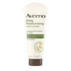 Product Description Aveeno Daily Moisturizing Lotion with Oat for Dry Skin, Unisex 2.5oz Aveeno Daily Moisturizing Body Lotion with Prebiotic Oat formula intensely nourishes dry skin. Formulated with a soothing prebiotic oat, the fragrance-free lotion has clinically proven moisturization that lasts 24 hours. This daily body lotion nourishes and helps replenish skin's natural moisture barrier. The unique prebiotic oat formula absorbs quickly and nourishes dry skin with moisture, leaving your skin soft, beautiful and healthy-looking. 2.5-fluid ounce tube of Aveeno Daily Moisturizing Body Lotion with Prebiotic Oat intensely nourishes dry skin with clinically proven moisturization that lasts for 24 hours. To use, apply daily as often as needed Nourishing lotion contains a unique soothing prebiotic oat formula that absorbs quickly, locks in moisture to nourish and help improve skin's natural moisture barrier, leaving your skin soft, beautiful and healthy looking Moisturizing lotion works to help prevent, protect, and nourish dry skin. It replenishes moisture for softer and smoother skin. The gentle formula of the daily body lotion is free of fragrances, parabens and dyes and is suitable for sensitive skin Lotion is non-greasy, non-comedogenic, and gentle enough for daily use as part of a regular beauty and skincare routine. From Aveeno, a dermatologist recommended brand for over 65 years The Aveeno brand’s goal is to have 100% recyclable, reusable or compostable packaging by 2025. We’ve relied on nature for generations. Now we’re protecting its future Ingredients Water, Glycerin, Distearyldimonium Chloride, Petrolatum, Isopropyl Palmitate, Cetyl Alcohol, Avena Sativa (Oat) Kernel Flour, Dimethicone, Benzyl Alcohol, Sodium Chloride