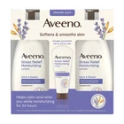 Aveeno Stress Relief Moisturizing Body Lotion with lavender scent and prebiotic oat helps calm and relax you while moisturizing for a full 24 hours to leave skin soft and smooth. Using the goodness of nature and the power of science, this soothing daily body lotion is made with prebiotic oat and intensely hydrates skin, leaving it feeling soft and smooth. It also combines the calming scent of lavender and prebiotic oat to help calm and relax you as you massage it into your skin to help you unwind and lock in moisture. This lavender scented body lotion has a nourishing non-greasy formula that absorbs quickly for lasting moisture throughout the day and is from Aveeno, a dermatologist recommended brand for over 70 years. This moisturizing stress relief lotion is formulated for sensitive skin and is non-comedogenic, paraben-free, dye-free, and gentle. This bottle is made with 30% Post-Consumer Recycled Plastic. Product Features: Stress Relief Moisturizing Body Lotion with lavender scent to help you relax while hydrating skin Calming daily body lotion provides 24 hours of intense moisture for skin that feels soft and smooth Its unique formula includes natural oatmeal, an ingredient known for its skin-soothing properties Stress Relief Lotion with lavender scent helps calm and relax you as you massage it into your skin Non-greasy stress relief body lotion from a dermatologist-recommended brand for over 70 years Use the calming and fast-absorbing body lotion after bathing or anytime to lock in moisture Aveeno uses the goodness of nature & the power of science to keep skin feeling healthy and balanced Stress Relief Body Lotion has a bottle that is made with 30% Post-Consumer Recycled Plastic Includes stress relief body lotion, 2 pk./18 oz. + 2.5 oz. travel size bottle