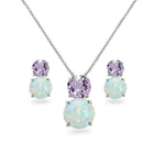 B. BRILLIANT Opal Necklace and Earrings Jewelry Set for Women or Bridesmaids, Genuine, Simulated or Created Gem & Opal Double Round Stones, .925 Sterling Silver Sets With Gift Box Product Details Color: Amethyst Brand: B. BRILLIANT MPN: US_JWEY_B079TW65GG UPC: Does not apply EAN: Does not apply Department : womens Date First Available : February 15, 2018 Manufacturer : GemStar USA Brand, Seller, or Collection Name: B. BRILLIANT Metal stamp: 925-sterling Metal: Sterling Silver Material: Sterling Silver Gem Type: Amethyst Minimum total gem weight: 2.59 carats Setting: prongs Height: 0.55 inches Width: 0.31 inches Length: 18 inches Chain: Rolo Clasp: Spring Ring Clasp Resizable: No Number of stones: 6 Stone Weight: 1.25 carats Model number: US_JWEY_B079TW65GG Sterling Silver Genuine, Simulated or Created Gemstone & Synthetic Opal Double Round Stud Earrings & Necklace SetThe necklace showcases a round 6mm gemstone nested above a 8mm synthetic opal gemstone, for a gorgeous two-stone friendship style set. The pendant measures 14mm in length and dangles from a 18-inch rolo chain that secures with a spring-ring clasp. The stud earrings feature a pair of round 5mm gemstones nested above 7mm synthetic opal gemstones. The earrings measure 12mm in length and secure by post with friction backs. Choose from the Following Colors:Amethyst, Garnet, Created Blue Sapphire, Created Pink Sapphire, Created Ruby, Simulated Emerald, Blue Topaz, White Topaz