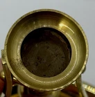 This is previously used and has some blemishes / scratches due to usage. No breaks or cracks. Add a touch of elegance to your home decor with this stunning BALDWIN Brass Chamberstick Candlestick. Crafted in the United States, this original piece features a polished brass finish and a nautical design that adds a unique charm to any room. The candlestick is medium-sized, measuring 7 inches in height and 6-1/8 inches in width, with a weight of 1lb 2oz. This beautiful candle holder is perfect for any occasion and is sure to create a warm, cozy atmosphere in your home. It features a hanging and swinging design that adds a touch of sophistication to your decor. The BALDWIN Brass Chamberstick Candlestick is a must-have for collectors and is an excellent addition to any decorative collection.