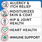 BARK&SPARK Omega 3 for Dogs - 180 Fish Oil Treats 180 Ct, Skin Health Product Details Item Weight: 1.32 pounds Manufacturer: Bark&Spark Item model number: BS24OMEGA Item Package Dimensions L x W x H: 6.38 x 3.74 x 3.66 inches Item Weight: 0.6 Kilograms Brand Name: BARK&SPARK Target Audience Keyword: dogs, house-cats Directions: Servings based on pet's weight: under 20lbs - 2 treats per day, 21-40lbs - 3 treats per day, 41-60lbs - 4 treats per day, over 61lbs - 6 treats per day. Strictly follow recommended servings. Color: Omega Skin Health Size: 180 Ct Material: Other Age Range Description: All Lifestages Care Instructions: Keep in a Dry Place Breed Recommendation: All Breeds Specific Uses for Product: Food Allergies, Itchy Skin Relief, Shedding, Skin & Coat Health, Skin Health Package Dimensions : 6.38 x 3.74 x 3.66 inches; 1.32 Pounds Item model number : BS24OMEGA Manufacturer : Bark&Spark Brand: BARK&SPARK Flavor: Salmon Item Form: Chews, Treats Product Benefits: Itchy Skin Relief. Moisture. Skin & Coat Health Itch & Allergy Relief with Omega-3 for Dogs - with 500mg of Omega (EPA+DHA) per serving, our chewable supplement helps with hot spots, dry itchy skin, ease itching, irritated skin, stops shedding. Skin & Coat + Hip & Joint Supplement Combined - Omega 3 is a vital element to keep your pet active, support healthy hip and joints, brain, heart, immune health. Can be served with regular pet food. Bark&Spark Commitment - we are keen to give best to our furry customers and we take NO compromise when it comes to product quality. Our omega 3 bites are made in the USA, with human grade ingredients. Up to 3 Month Supply - with 180 salmon oil treats per jar you keep your pet healthy while not spending a fortune on overpriced supplements. Best value. Is Your Dog a Picky Eater? We stick to simple formulas rich in natural salmon flavor, that could tempt a fussy eater. No hassle with pills, powder, tablets or capsules. Help your buddy tackle dry itchy skin and get healthy shiny coat with Omega Dog Treats. Packed with essential Omega 3 6 9 fatty acids, source from wild Alaskan salmon, these chewable treats are all-in-one skin and coat supplement, formulated for daily use. Health benefits: - Support Healthy Skin & Coat - Relief Allergies - Itch Relief - Boost Immune - Hip & Joint Health Support - Brain and Heart Functions Support Dog Omega Treats are suitable for all breeds, sizes and ages, from puppies to older dogs. Recommended serving: Serve with each meal, amount based on dog's weight: Up to 20 lbs. - 3 chew, 21 to 40 lbs. - 3 chews, 41 to 60 lbs. - 4 chews, 61 lbs. and over - 6 chews. Strictly follow recommended servings.