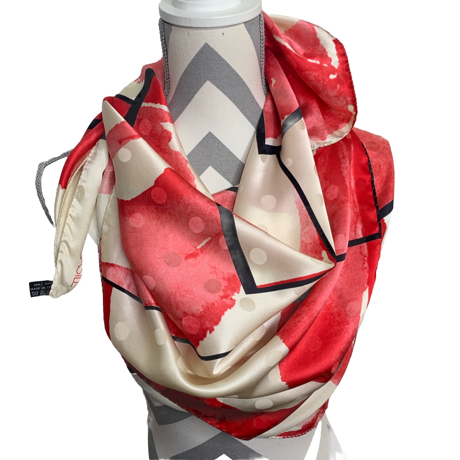 BASILE 34” SQUARE SCARF MADE IN ITALY 100% SILK BOLD RED BLACK IVORY FLORAL PRINT GORGEOUS PREOWNED AND IN EXCELLENT CONDITION PLEASE SEE PHOTOS