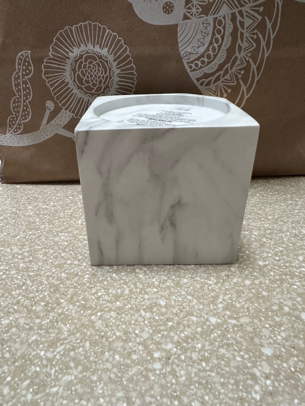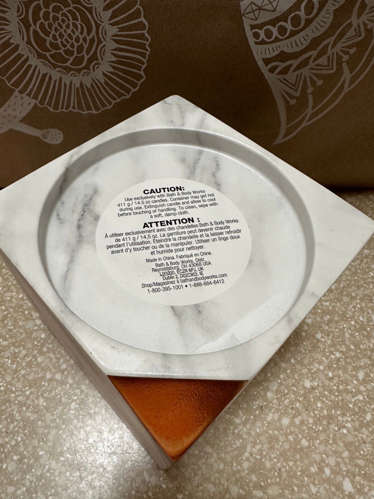 Brand new with tags, never used/displayed - storage bin kept, smoke free home, immediate shipping. Details: Bath & Body Works Faux Marble Candle Holder Pedestal. Features a gorgeous faux marble design with gold corner detailing and is perfect for holding your favorite 3-wick candle. This large cube-shaped candle holder is easy to care for.