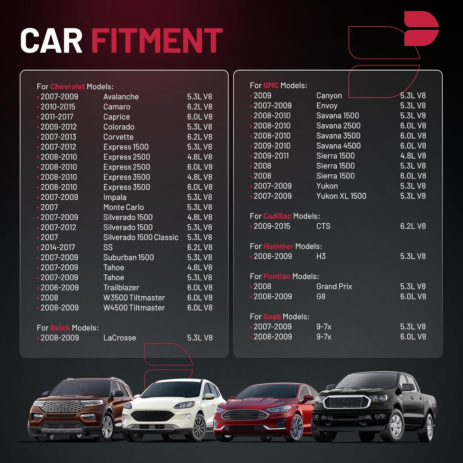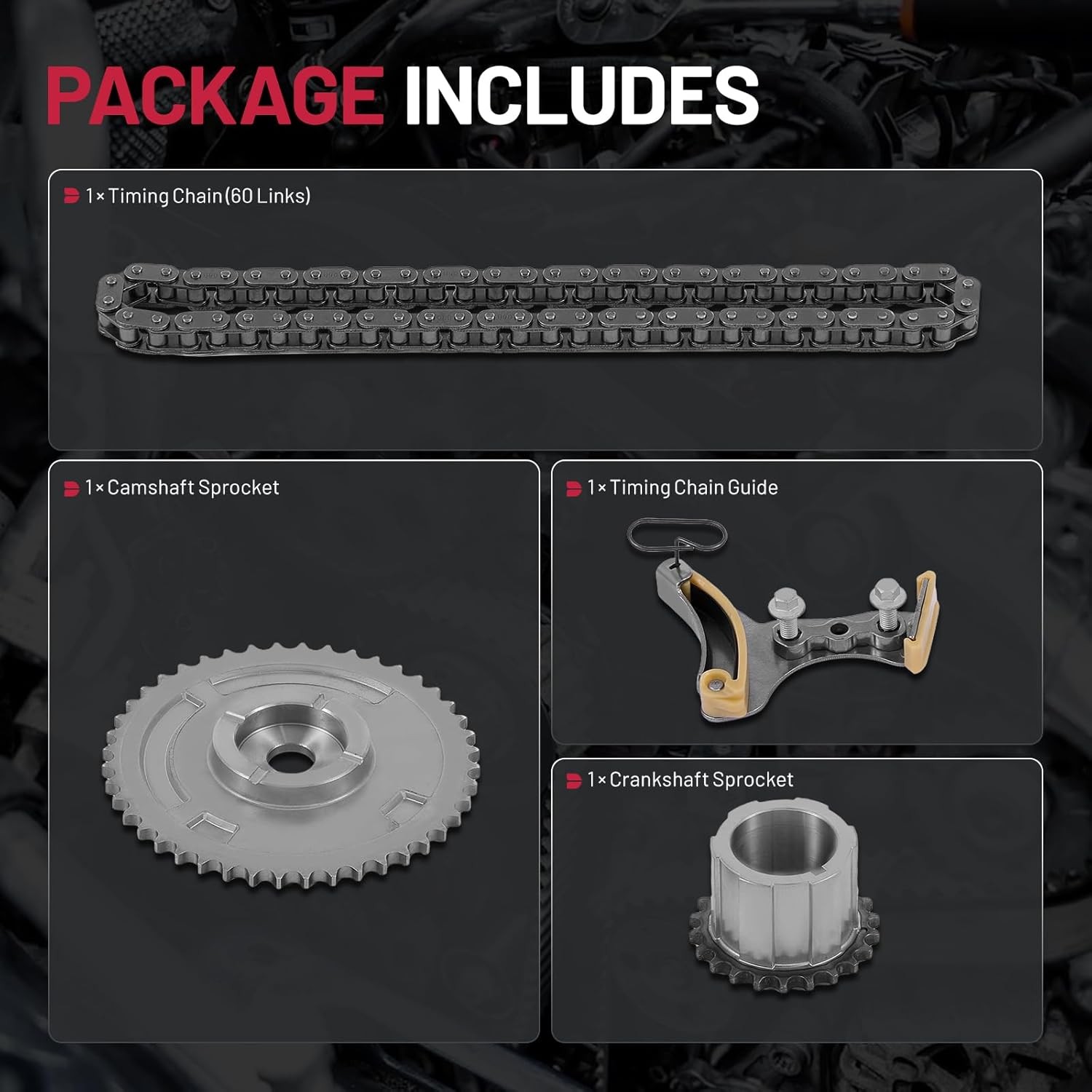 BDFHYK Engine Timing Chain Kit with Sprocket Tensioner Compatible with Chevy Compatible with GMC Fit for 2007-2017 Express Silverado Tahoe Sierra Yukon Suburban Camaro H3 CTS, 4.8L 5.3L 6.0L 6.2L V8 BDFHYK Engine Timing Chain Kit with Sprocket Tensioner Compatible with Chevy Compatible with GMC Fit for 2007-2017 Express Silverado Tahoe Sierra Yukon Suburban Camaro H3 CTS, 4.8L 5.3L 6.0L 6.2L V8 FREE AND FAST SHIPPING! About this item [Compatible Vehicles]: Compatible with Chevy 2006-2017 Silverado 1500, Impala, Avalanche, Camaro, Caprice, Corvette, Colorado, Express 1500 2500 3500, Tahoe, Trailblazer; Compatible with GMC 2007-2011 Canyon, Envoy, Savana, Sierra 1500, Yukon; Compatible with Cadillac 2009-2015 CTS; Compatible with Buick 2008-2009 LaCrosse; Compatible with Hummer 2008-2009 H3; Compatible with Pontiac 2008-2009 Grand Prix, G8; Compatible with Saab 2007-2009 9-7x. See pictures for more details. [Part Numbers]: This engine timing chain kit replacement corresponds to the following OE part numbers: 33SRH60S, 3SRH60, 12646386, 12626407, 12585997, 12556582, 12591689, C-3227, TS13227, T66092, S894T, G55894, S894, S827, 9-4205, 9-5490, 94205, 95490. [Package Includes]: 1 x Timing Chain(60 Links), 1 x Camshaft Sprocket, 1 x Crankshaft Sprocket, 1 x Timing Chain Guide. [Feature]: This timing chain kit is precision-built to deliver long-lasting performance under intense heat and pressure. Each component is thoroughly tested to meet or exceed OEM standards, ensuring optimal reliability and fit. [Important Notice]: Please check your vehicle's year, make, model and engine type via the "Amazon Fitment Check" in the upper left corner to confirm compatibility. Product We offer a 30-Day Return Policy on items which you are not completely satisfied with. You have the option for a full-refund or an exchange of the item. No returns are available on items shipped outside of the US . Shipping We offer Free Shipping to the US and ship within 2 business days of payment, usually sooner. We use UPS express shipping. That's why your products are usually delivered within 3 days . Contact We try our very best to make sure every customer is completely satisfied. If there's a problem , message us! We're happy to help. 24/7 live chat available.