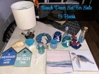 Includes 19 pieces: - [ ] One Anchor Lamp - [ ] 2 Sign Plaques (one says a mermaid lives here the second one says on beach time) - [ ] one Decor shell - [ ] one Blue Shell Light - [ ] one Bath and body works shell wall plug (used) - [ ] one Blue wall plaque - [ ] one Seahorse Decor Figurine - [ ] One Turtle Small Wall Art (New in Package) does have a small hole on bottom right corner - [ ] One Wave Small Wall Art - [ ] one Mini decor starfish - [ ] one Message in a bottle glass decor - [ ] one Blue candle holder - [ ] Two candle holders (one with fish, second one with starfish rope) - [ ] 2 decorative bottles - [ ] 2 Anchor Wall Decor