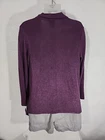 Elevate your wardrobe with this stunning BOBEAU Deep Purple Soft Brushed Open Draped Wallace Cardigan. This versatile piece is perfect for any occasion, whether it's a casual day out or a formal event. The cardigan features an open front neckline and closure, with long sleeves and a relaxed fit for ultimate comfort. The fabric is made of 75% rayon, 21% polyester, and 4% spandex, ensuring a super soft knit that stretches to fit all seasons. The cardigan is designed with a solid pattern and a beautiful purple color that will add a touch of elegance and bohemian vibe to your outfit. This draped cardigan top is perfect for women of size M and is part of the Wallace Brushed Cardigan product line. New with tags
